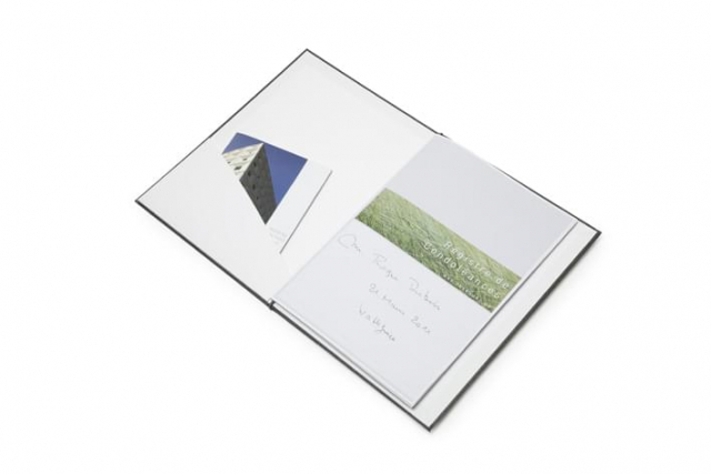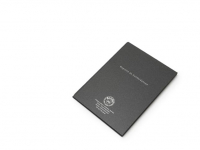 Registre de condoléances avec couverture rigide recouvert avec simili gris et pourvu d'un élastique. Fourni avec une page de garde. Feuilles à signatures à commander à part. Marquage de la raison social et logo possible à partir de 50 ex.